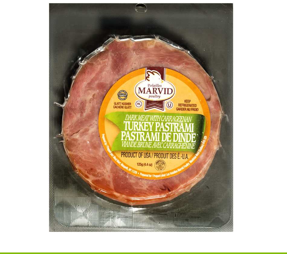 Our deli meats are available in vacuum packs. You can get: smoked turkey breast, Mexican smoked turkey breast, nitrate-free oven roasted turkey breast, turkey pastrami, salami of turkey and turkey breast rolls. Our turkey meats are offered pre-sliced in packages of 125g and 175g.